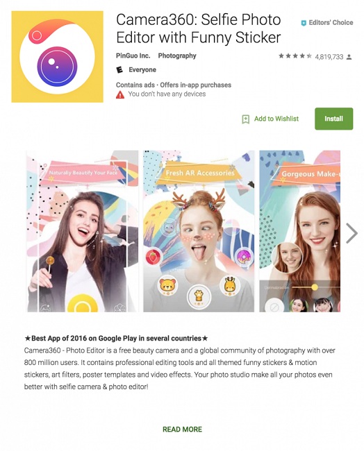 camera360 lite wins google play best of 2016 in multiple countries china money network