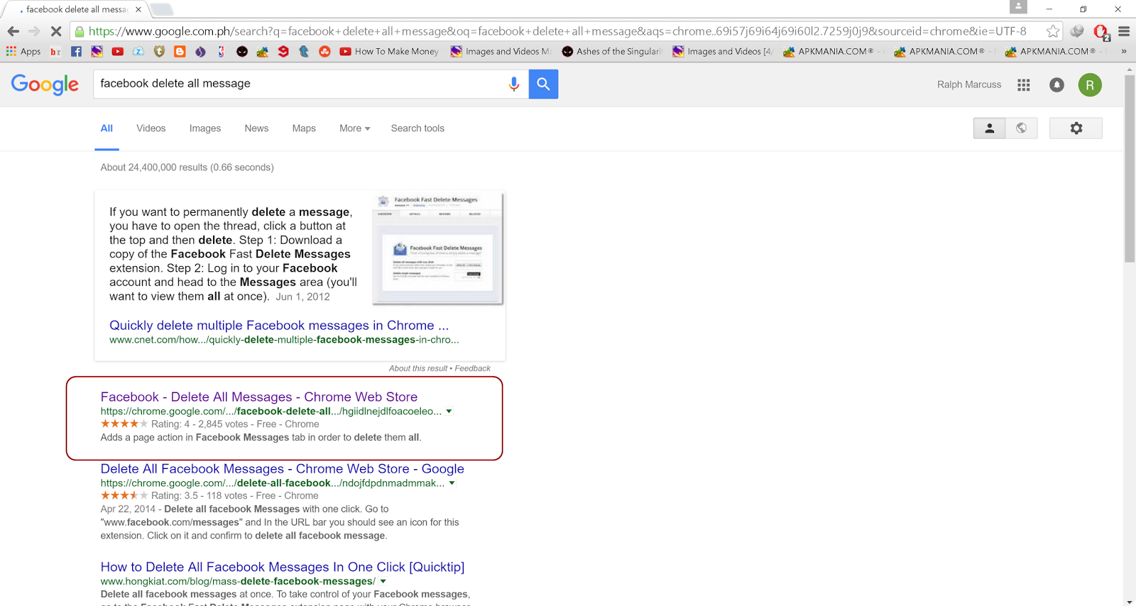 mass delete facebook messages at once