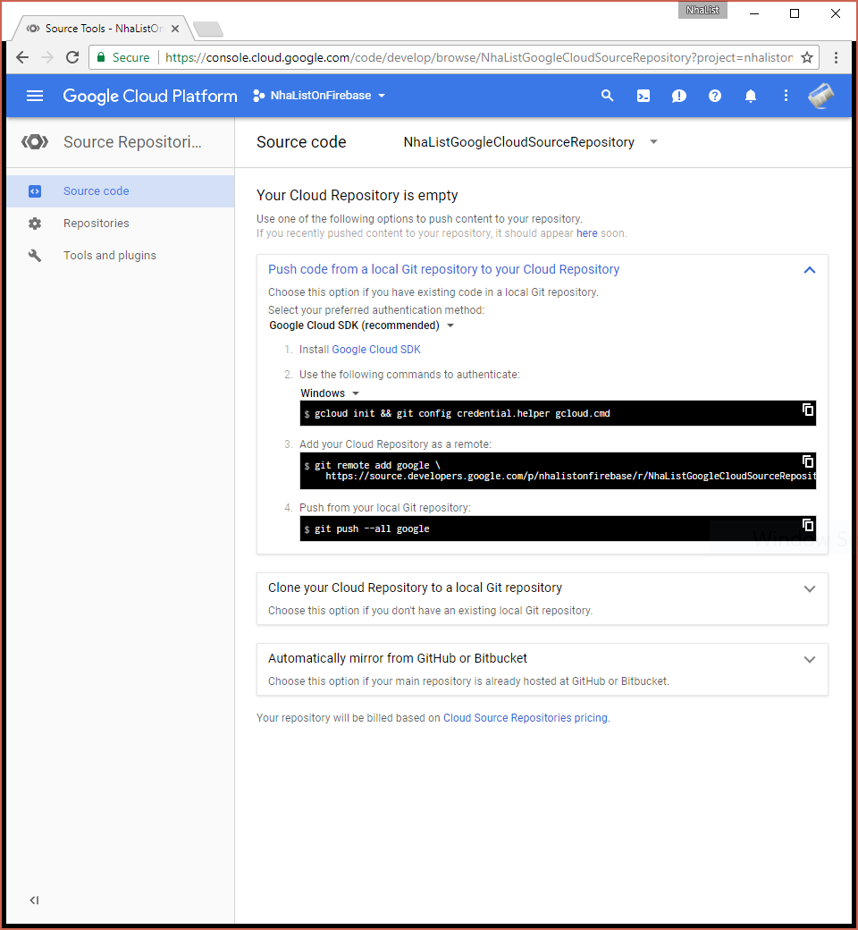 how to use google cloud repositories