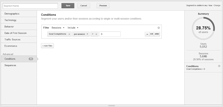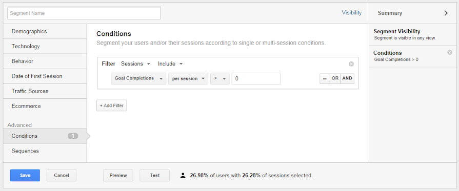 google analytics advanced segments