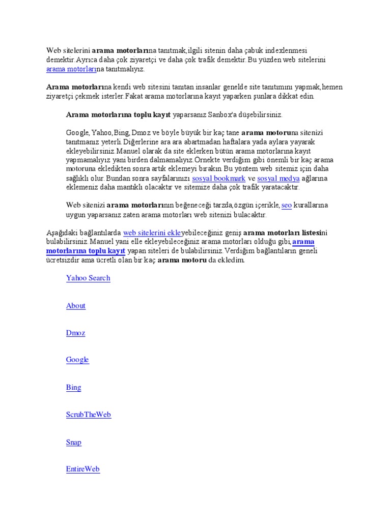 arama motorlari kaydi arama motorlari