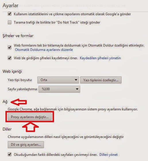 google chrome proxy ayarlari nasil