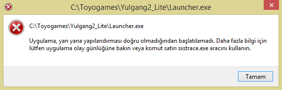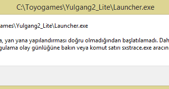 uygulama yan yana yapilandirmasi dogru olmadigindan baslatilamadi