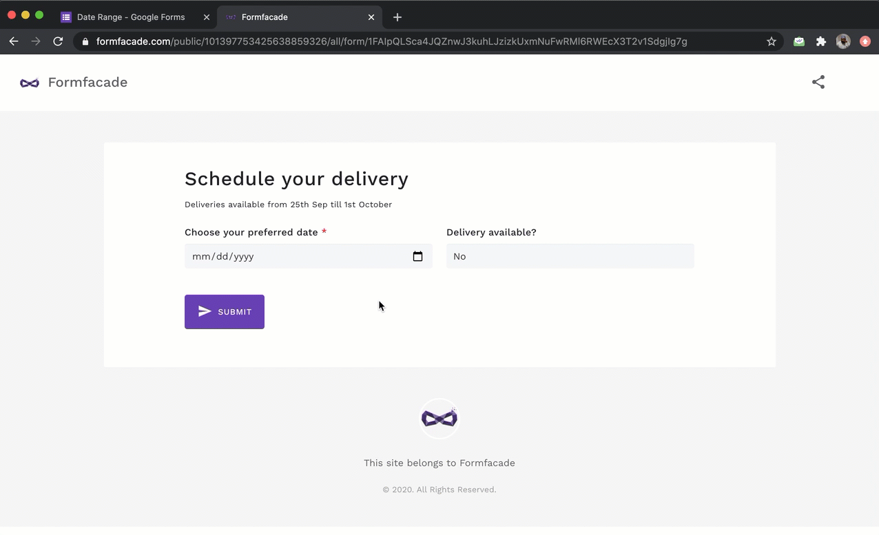 google form date picker type and