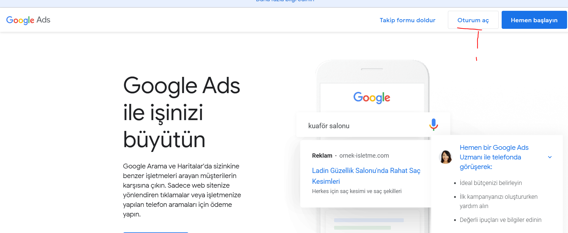 google da oturum acmak icin google