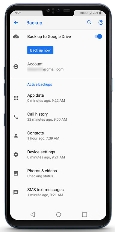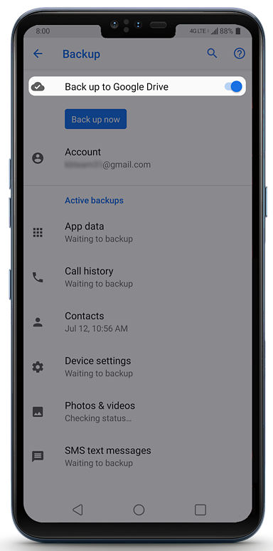 how do i backup my phone data to google
