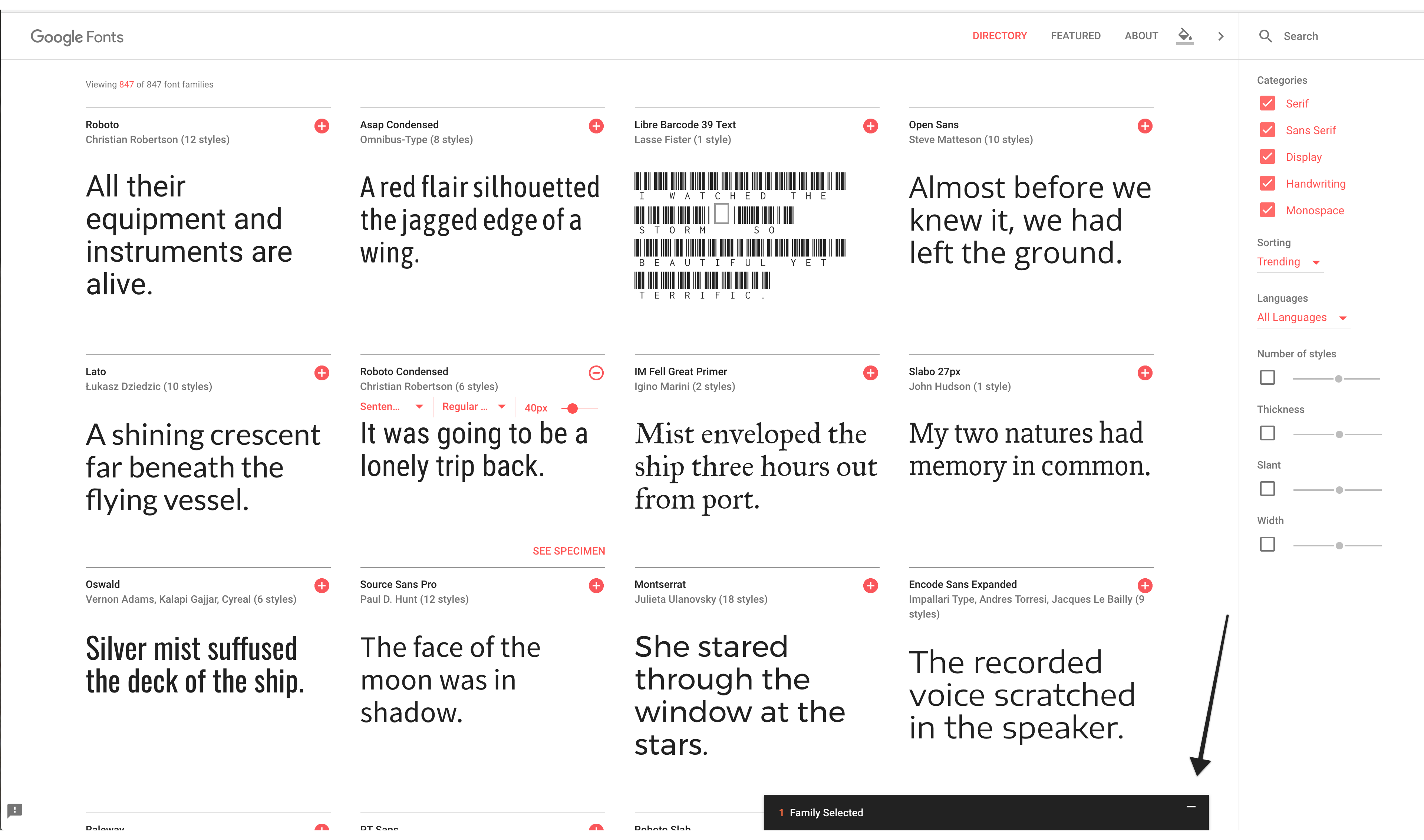 list of all font names on google fonts