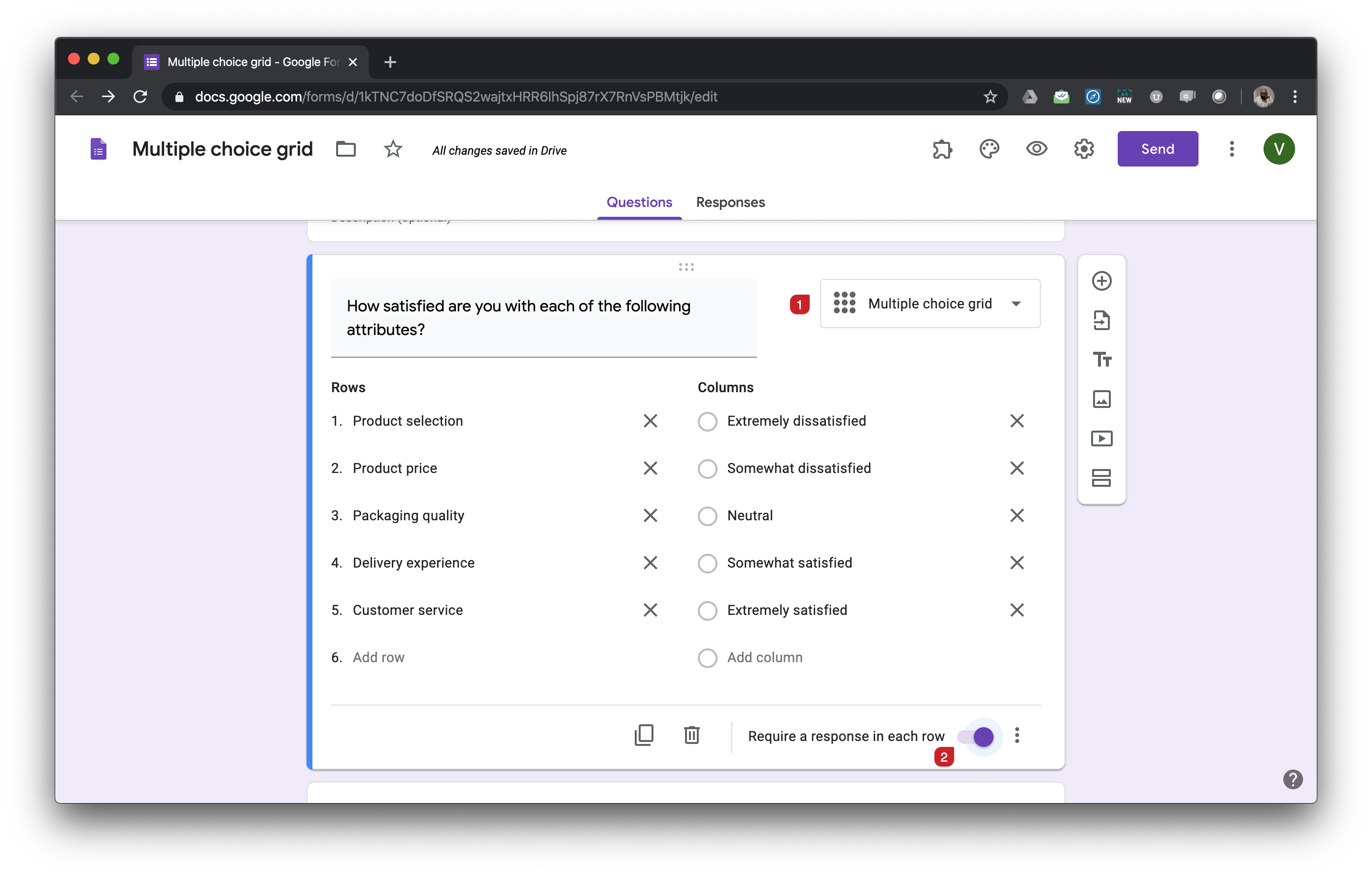 create ranked choices in google forms