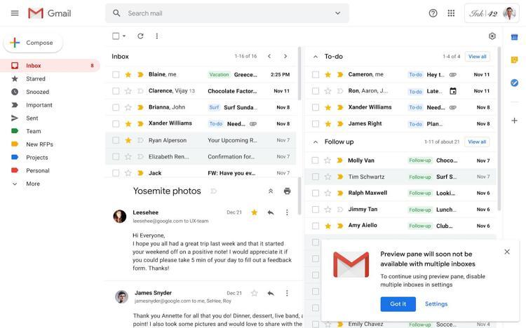 gmail gelen kutusu paneli her sey google