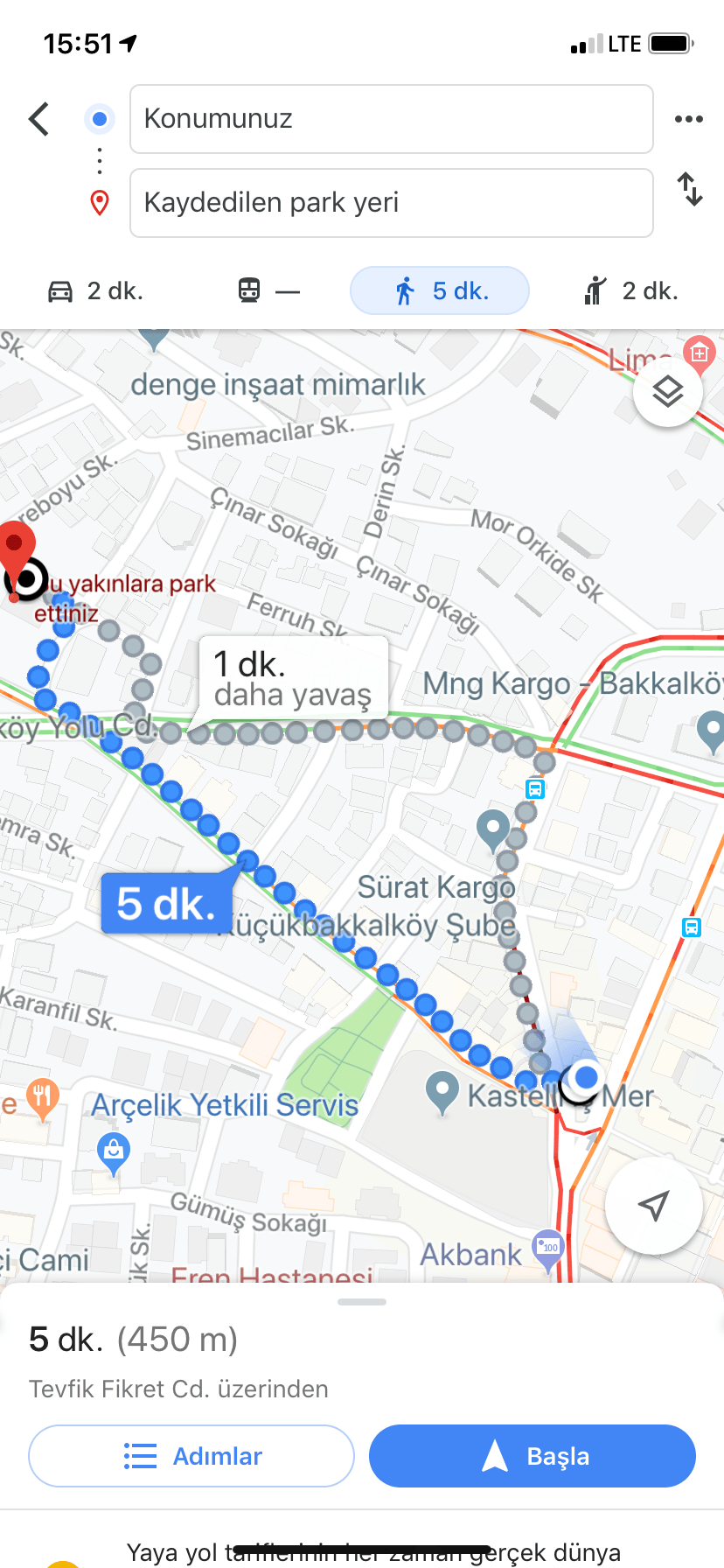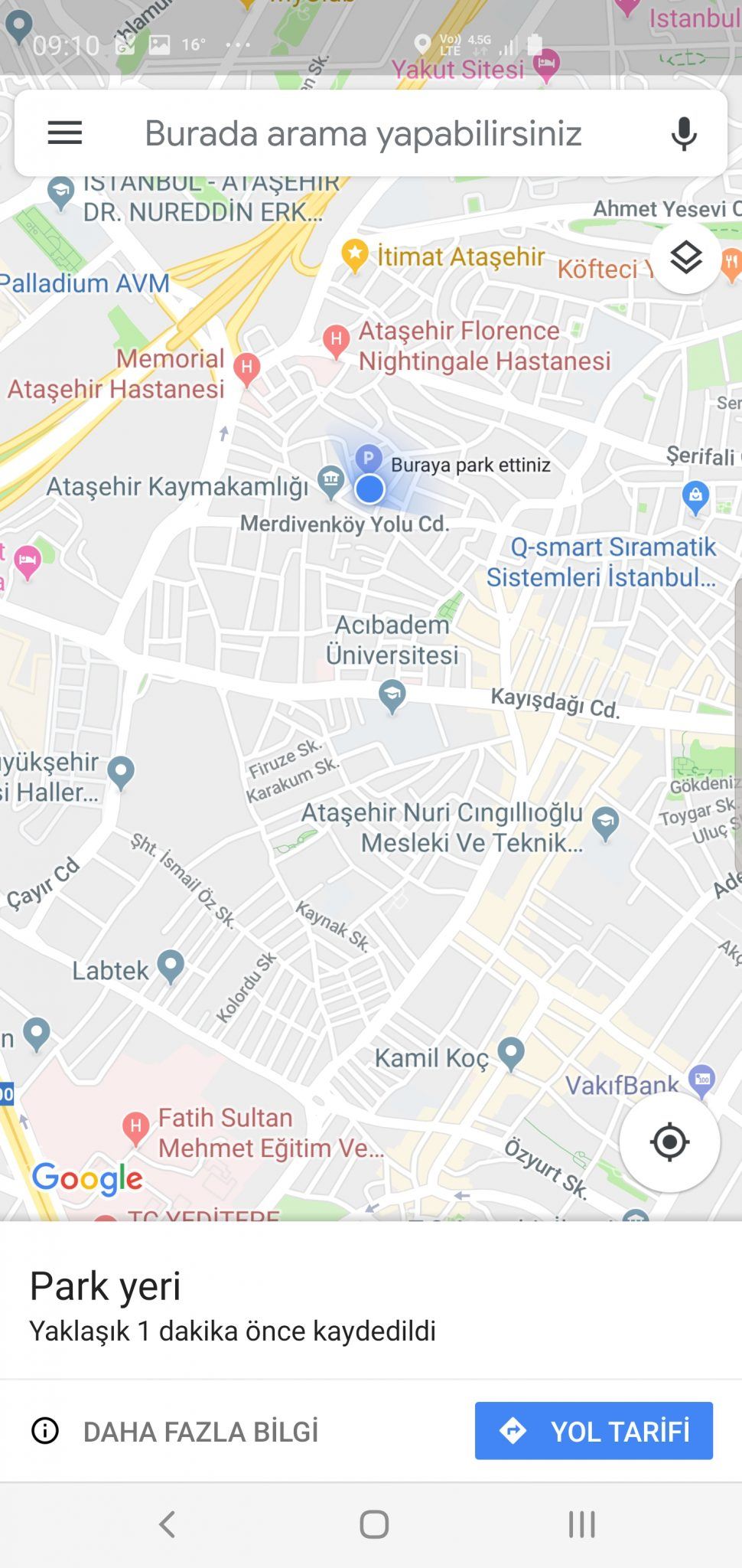 google haritalar ile park yeri kaydetme