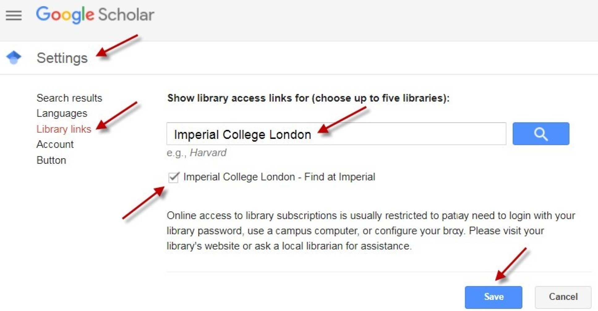 google scholar configuration library