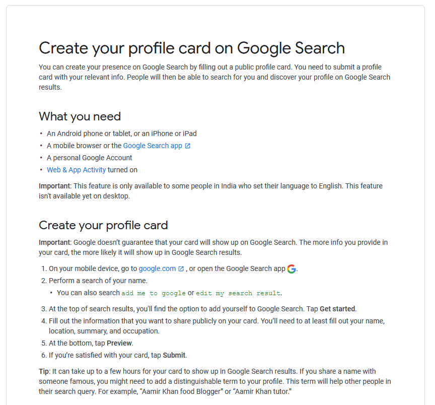 be famous google profile pages