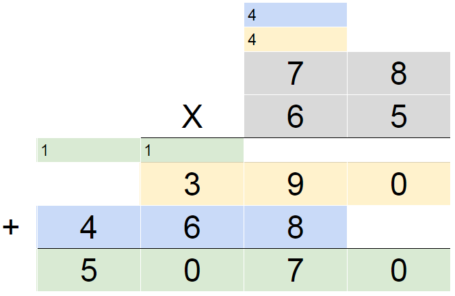 long multiplication with google sheets