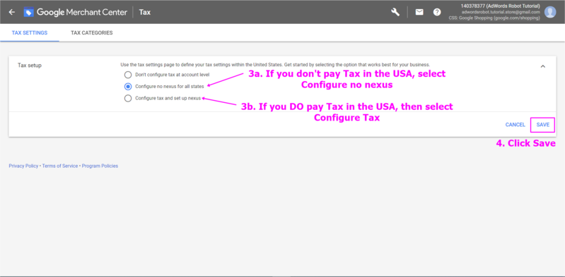 set up the tax information in google