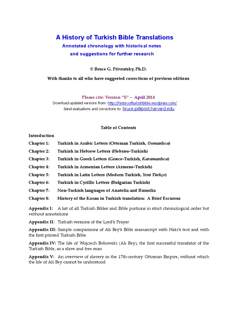turkish bible history version s