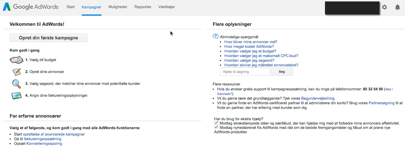 google ads opsaetning og den forste