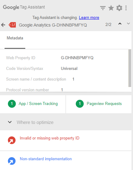 google analytics message non standard