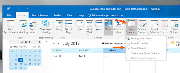 add ical and google calendar to outlook