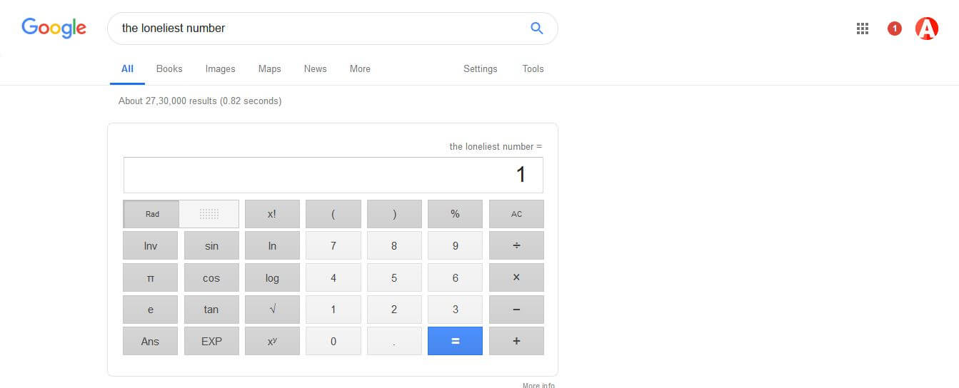 google calculator easter eggs the loneliest number
